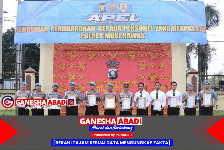 Musi Rawas, 29 September 2025 – Kapolres Musi Rawas (Mura), AKBP Agung Aditya Prananta, SH, SIK, MH, memimpin Apel Penyerahan Penghargaan kepada 17 personel Polres Mura yang berlangsung di Halaman Mapolres Mura, Senin (29/9/2025).