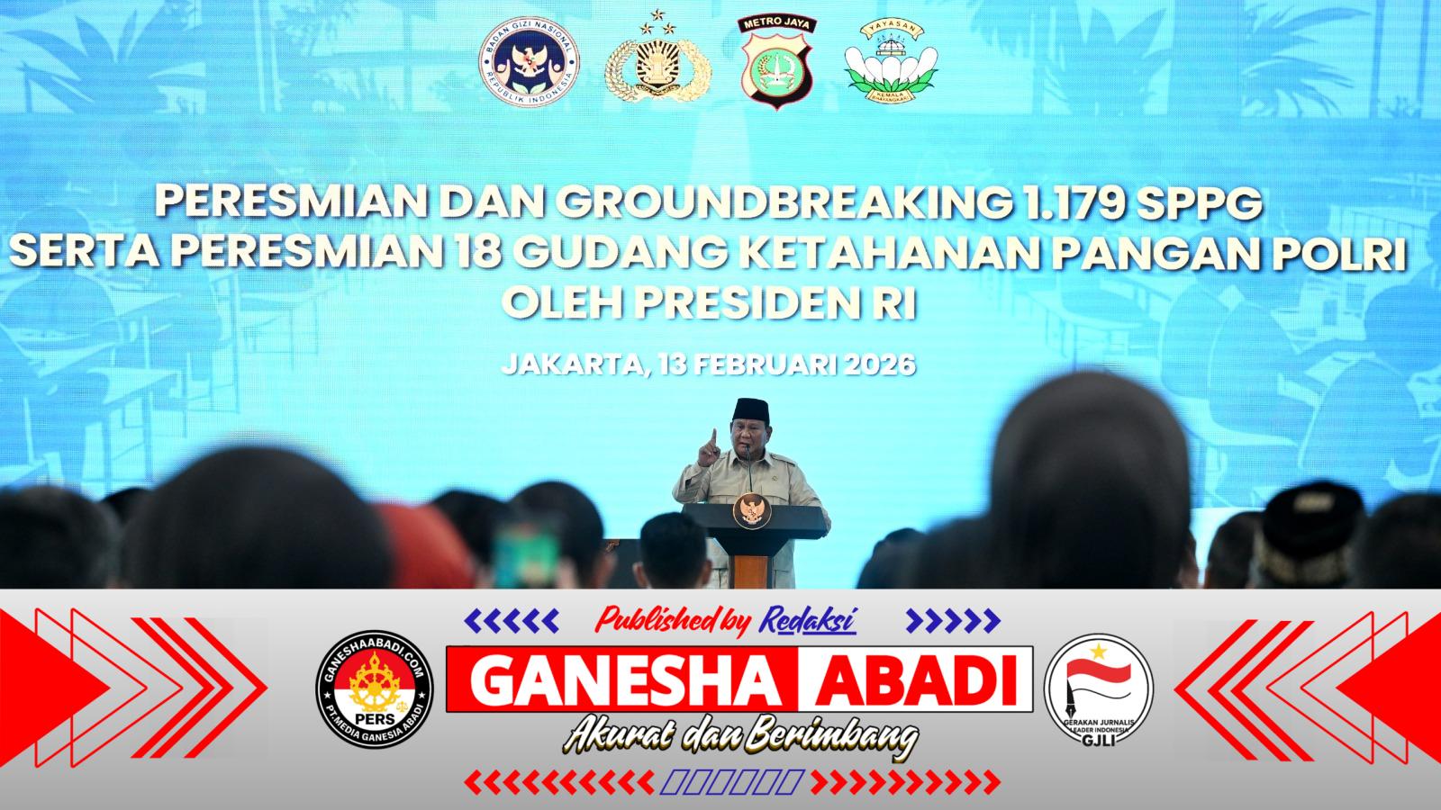 (Puspen TNI). Panglima TNI Jenderal TNI Agus Subiyanto menghadiri peresmian 1.072 Satuan Pelayanan Pemenuhan Gizi (SPPG) dan 18 Gudang Ketahanan Pangan Polri serta groundbreaking 107 SPPG yang dipimpin Presiden RI Prabowo Subianto di SPPG Palmerah, Polres Metro Jakarta Barat, Jumat (13/2/2026).