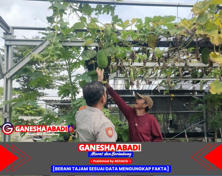 Dalam kegiatan ini, Aiptu Agus Adiyanto turut melihat langsung perkembangan tanaman labu yang sudah mulai menunjukkan hasil dengan mulai berbuah lebat.