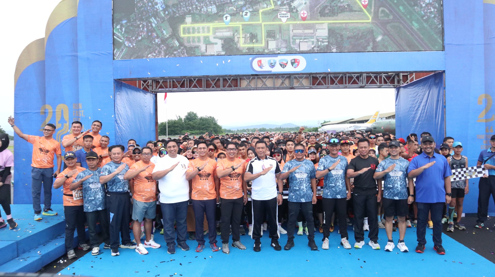 Makassar – Komandan Lanud Sultan Hasanuddin Marsma TNI Bonang Bayuaji G., S.E., M.M.,CHRMP bersama Pangdivif 3 Kostrad Mayjen TNI Bangun Nawoko, Kapolda Sulsel Irjen Pol Yudhiawan Wibisono, Kaskoops II Marsma TNI Indan Gilang Buldansyah, S.Sos., dan Bupati Maros H.A.S. Chairil Syam, S.IP., M.H melepas peserta Lomba Lari Massal Air Force Run, bertempat di taxiway Charlie Lanud Sultan Hasanuddin, Maros, Minggu (1/12/2024).