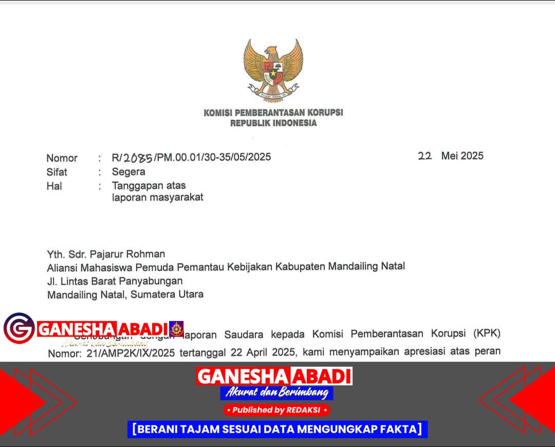Mandailing Natal – Aliansi Mahasiswa Pemantau Kebijakan Mandailing Natal (AMP2K) menyampaikan apresiasi setinggi-tingginya kepada Komisi Pemberantasan Korupsi (KPK) atas langkah tegas dan cepat dalam mengusut dugaan korupsi di lingkungan Dinas Pekerjaan Umum dan Penataan Ruang (PUPR) Provinsi Sumatera Utara, yang hingga kini telah berujung pada penggeledahan rumah dan kantor Kepala Dinas PUPR Kabupaten Mandailing Natal.
