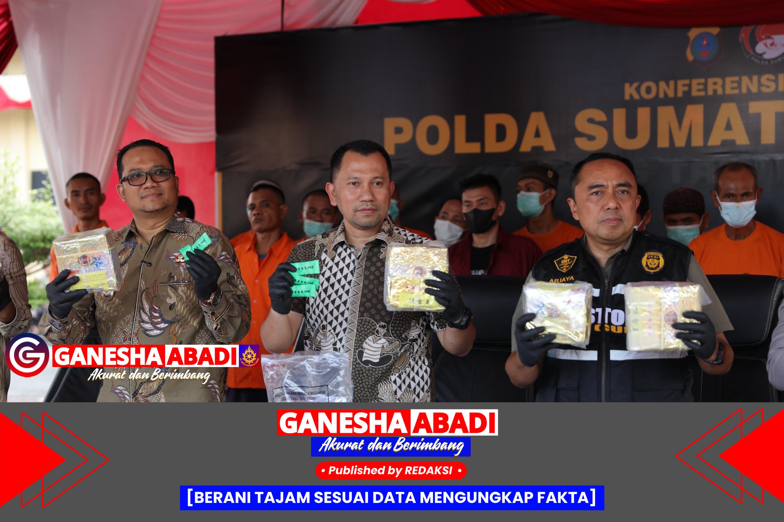 Ditresnarkoba Polda Sumut: 32 kasus, 51 tersangka. Barang bukti: 207,45 kg sabu, 5.464 butir ekstasi, 8.000 Happy Five, 1 kg ketamin, 2.000 vape.