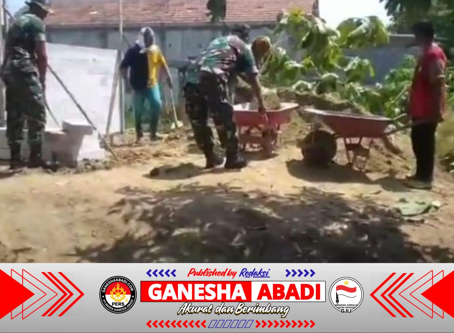 Sragen, Wujud kepedulian terhadap kesulitan warga binaan kembali ditunjukkan Babinsa Koramil 15/Gemolong Kodim 0725/Sragen Serda Ibrahim dengan turut membantu proses pengurukan rumah salah satu warga yang terdampak kondisi tanah rendah dan rawan tergenang air, Senin (2/3/2026).