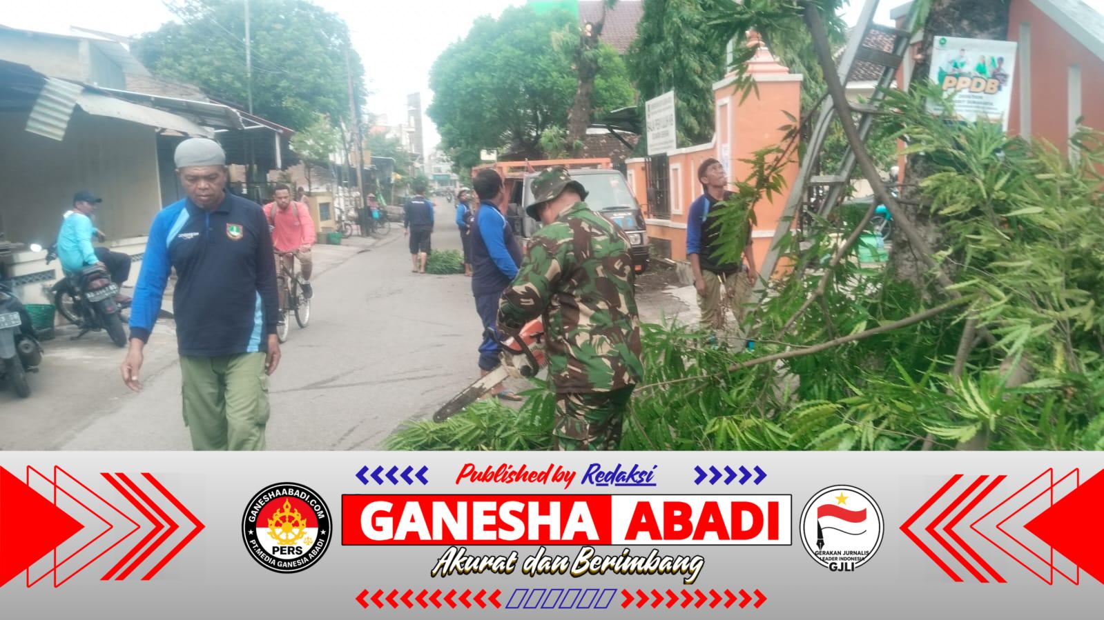 SURAKARTA – Babinsa Joyotakan Koramil 03/Serengan Kodim 0735/Surakarta, Serma Rumbawa, bersama Tim Sapu Bersih Lingkungan (Saberling) dan warga setempat melaksanakan kerja bakti pembersihan lingkungan serta perempelan pohon di RT 02 RW 03 Kelurahan Joyotakan, Kecamatan Serengan, Kota Surakarta, Sabtu (27/12/2025) pagi.