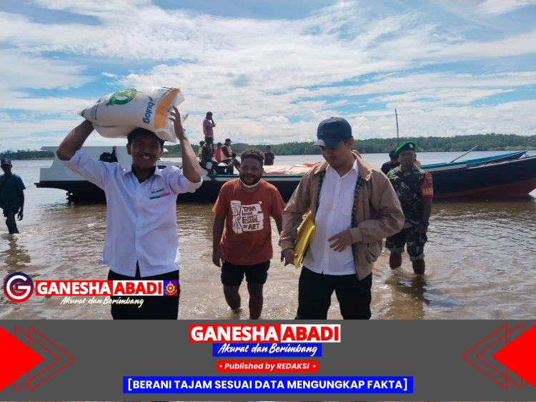 Bantuan disalurkan langsung ke sejumlah kampung yang berada di wilayah pesisir menggunakan perahu, mengingat akses jalur laut menjadi satu-satunya sarana menuju lokasi penerima manfaat.
