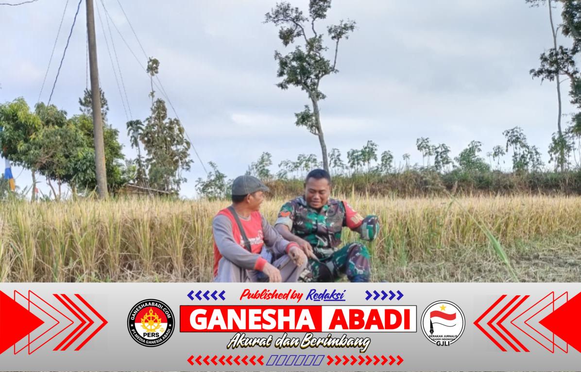 Pertemuan berlangsung hangat di tengah hamparan sawah yang sedang memasuki masa panen, mencerminkan sinergi kuat antara aparat teritorial dan masyarakat desa.