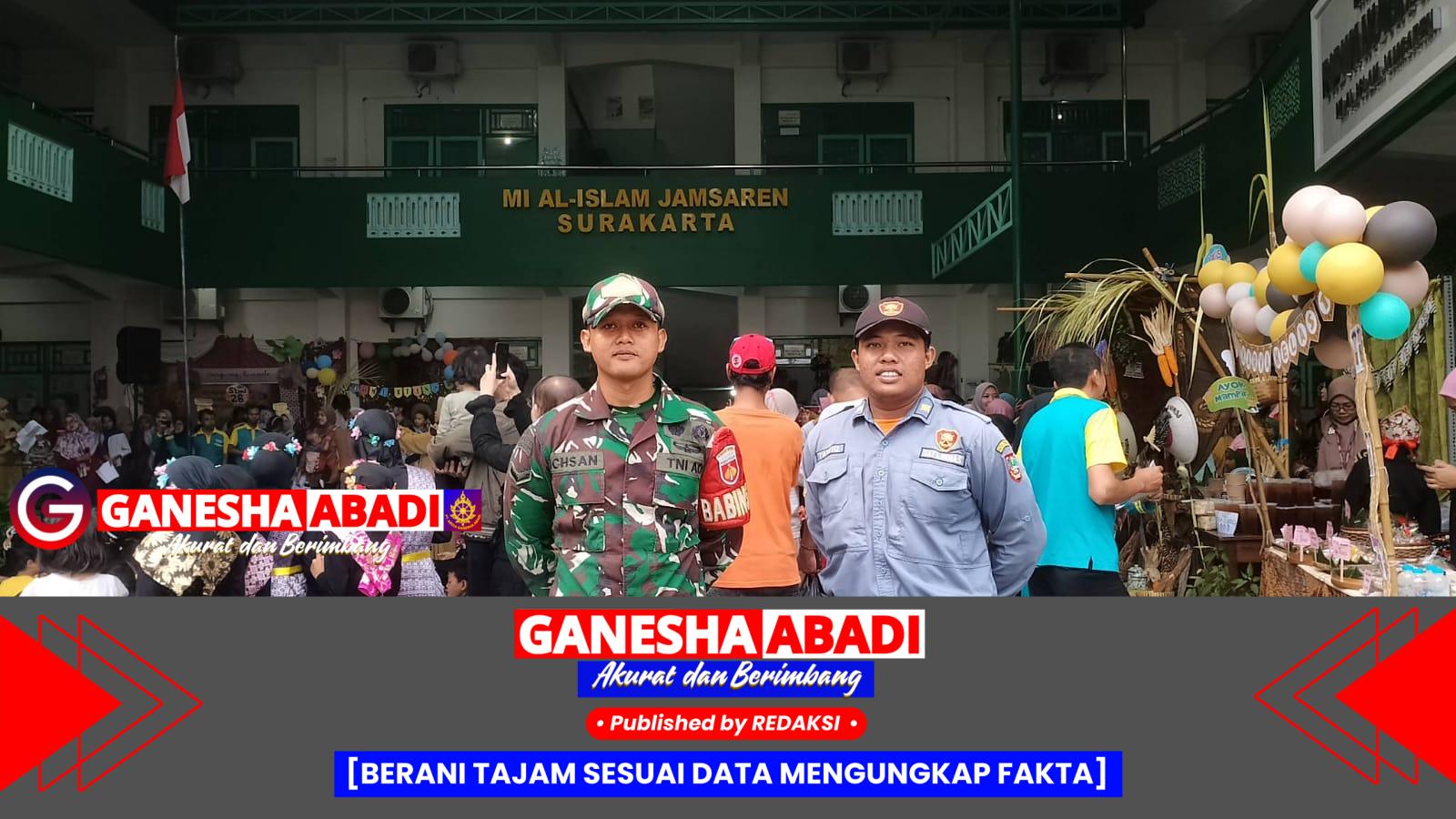 Surakarta — Dalam rangka mendukung dunia pendidikan dan menjaga kondusifitas wilayah binaan, Babinsa Koramil 03/Serengan Kodim 0735/Surakarta, Serda Ichsan Agung Nugroho, melaksanakan pengamanan dan pemantauan kegiatan Projek Penguatan Profil Pelajar Pancasila (P5) dan Expo di MI Al Islam Jamsaren, Jalan Arjuna Raya No. 5, Serengan, Selasa (17/6/2025).