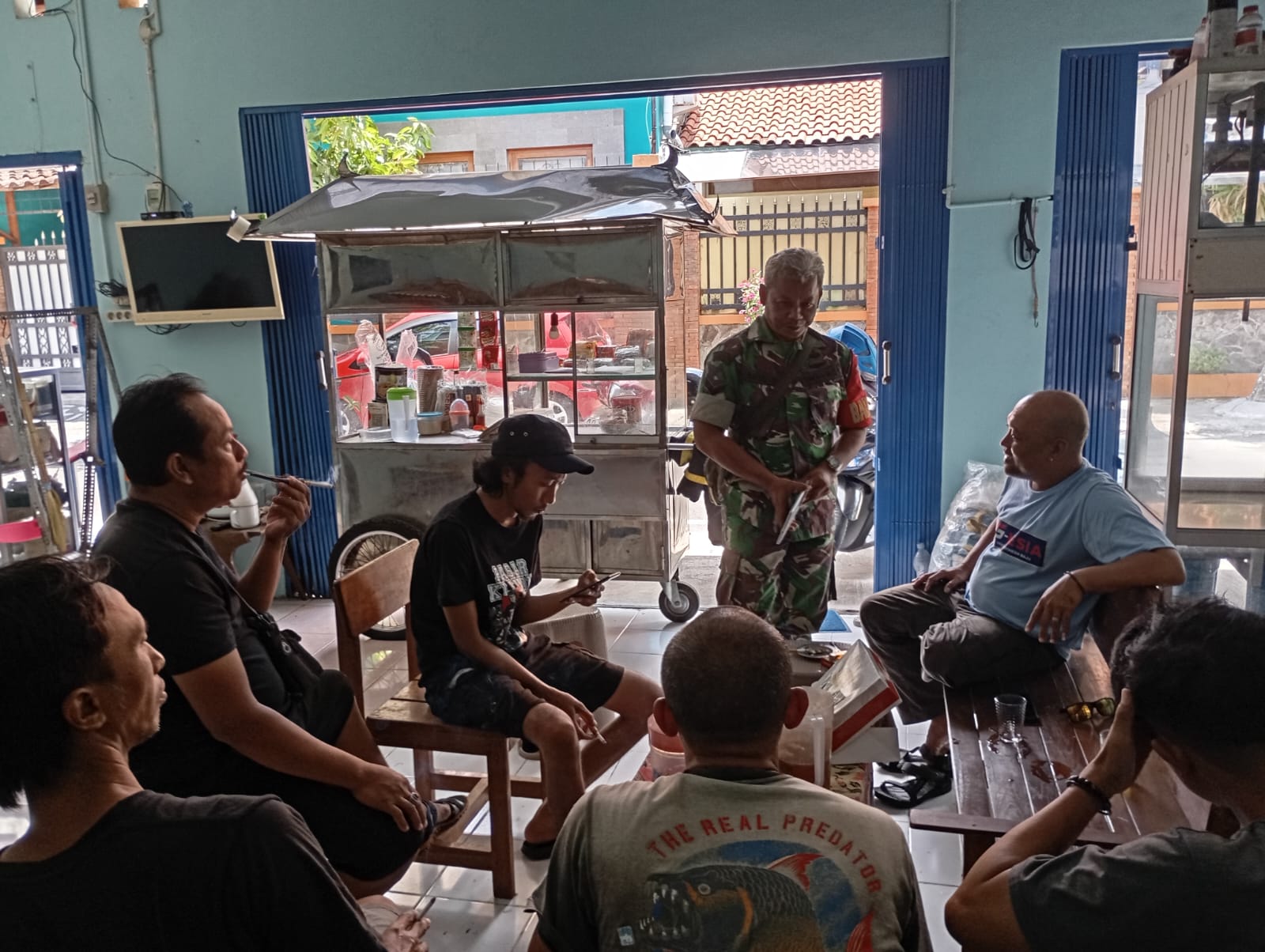 Surakarta – Serka Aris Setyo Utomo, Babinsa Kelurahan Serengan dari Koramil 03 Serengan Kodim 0735/Surakarta, menggelar komunikasi sosial (komsos) bersama warga RT 02/11, Serengan, Kota Surakarta, pada Minggu pukul 10.00 WIB (08/12/24).
