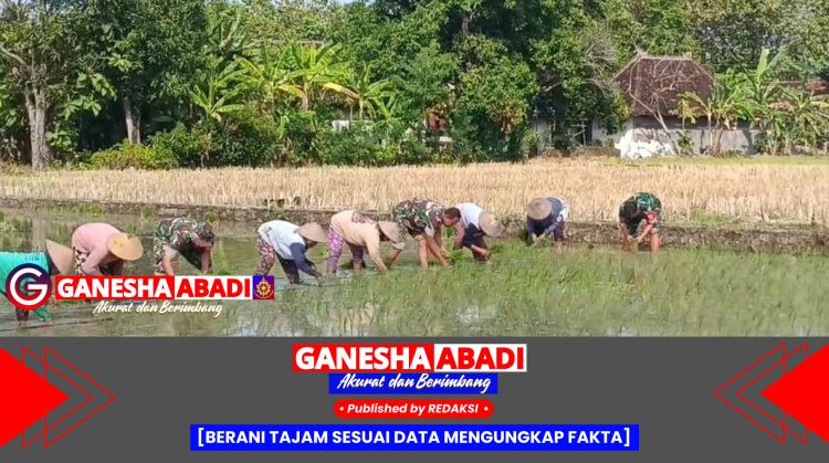 Sragen – Serda Agus JP, Babinsa Desa Kalangan, Kecamatan Gemolong, Kabupaten Sragen, menunjukkan kepedulian terhadap petani dengan turun langsung ke sawah membantu menanam padi di lahan milik Rudi, warga Dukuh Sentanan RT 12, Kamis (17/7/2025).