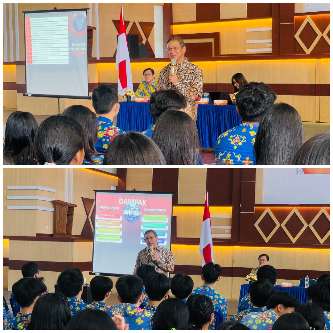 Pangkalpinang – Anggota DPD/MPR RI Provinsi Kepulauan Bangka Belitung, Bahar Buasan, S.T., M.S.M., M.Sc., menggelar sosialisasi Empat Pilar Kebangsaan di SMA Santo Yosef Pangkalpinang, Kamis (15/5/2025). Dalam kesempatan itu, Bahar mengajak para pelajar untuk menjadi agen keberlanjutan bangsa melalui internalisasi nilai-nilai kebangsaan.