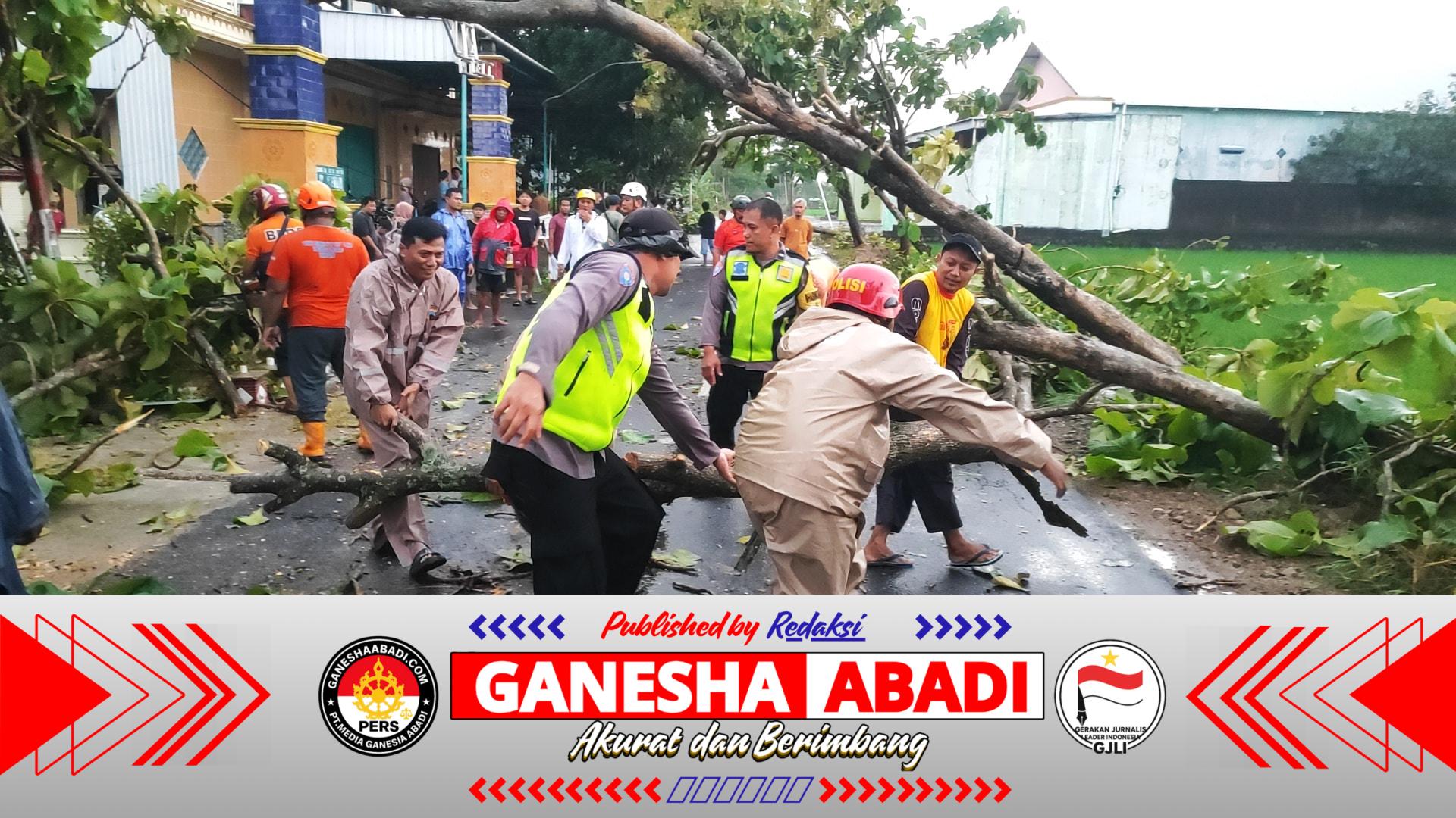 Tercatat sebanyak 17 pohon tumbang, terdiri dari 13 pohon jati, 2 pohon trembesi, 1 pohon mangga, dan 1 pohon sengon.