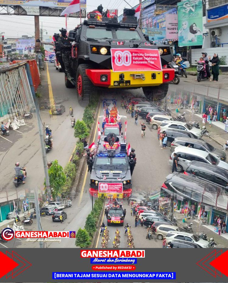 Lubuklinggau, Sumatera Selatan – Perayaan Hari Ulang Tahun ke-80 Republik Indonesia di Kota Lubuklinggau berlangsung semarak dan penuh kebanggaan. Dalam momen bersejarah ini, Satuan Brimob Polda Sumatera Selatan Batalyon B Pelopor turut ambil bagian dalam pawai kemerdekaan yang digelar meriah di pusat kota.