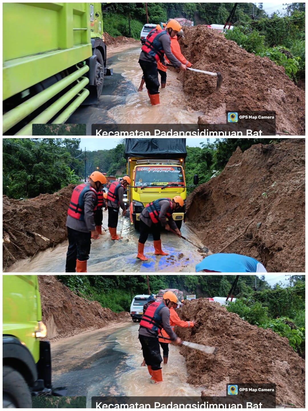 Padang Sidimpuan – Sebanyak 30 personel Batalyon C Pelopor Satuan Brimob Polda Sumut dikerahkan untuk membersihkan material longsor yang menutup akses Jalan Raja Inal Siregar, Batunadua Jae, Kecamatan Padang Sidempuan Batunadua, Sumatera Utara. Longsor terjadi akibat cuaca ekstrem yang melanda wilayah tersebut.
