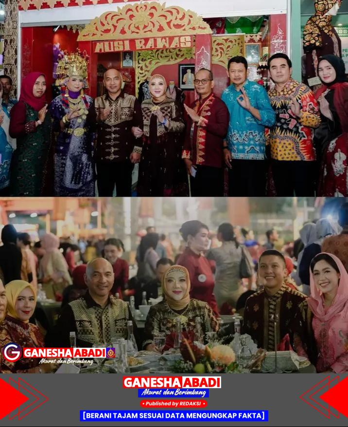Palembang — Bupati Musi Rawas Hj. Ratna Machmud bersama Ketua TP PKK Musi Rawas H. Riza Novianto Gustam menghadiri acara Malam Budaya Swarna Songket Nusantara yang digelar di pelataran Benteng Kuto Besak (BKB) Palembang, Jumat (1/8/2025).