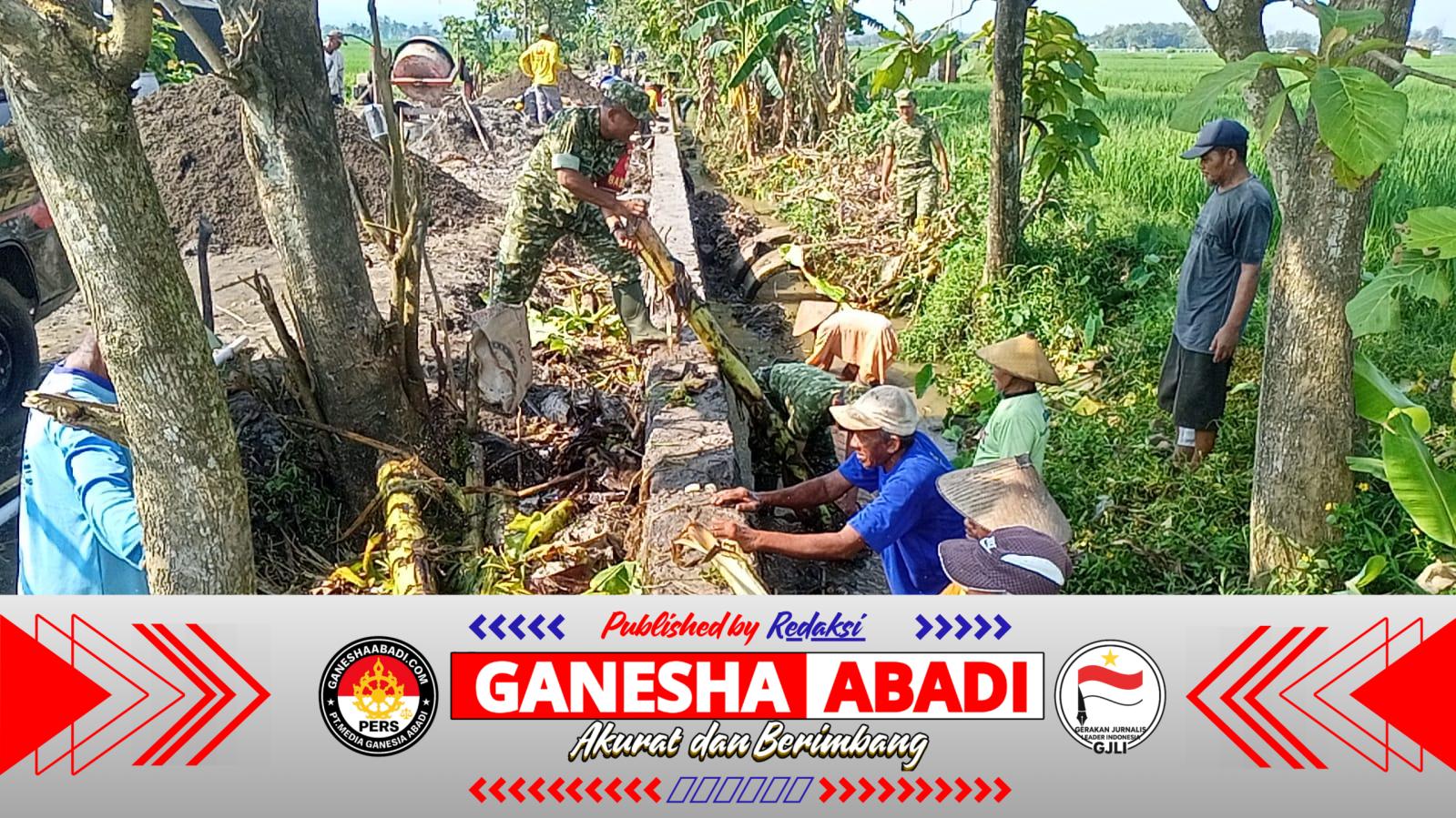 Sragen, Untuk mengantisipasi bencana di musim hujan, Serka Darmadi Babinsa Desa Plosokerep bersama dua orang anggota Koramil 02/Karangmalang Kodim 0725/Sragen bersama warga melaksanakan kerja bakti pembersihan talud di wilayah binaan, Jum’at (17/04/2026).
