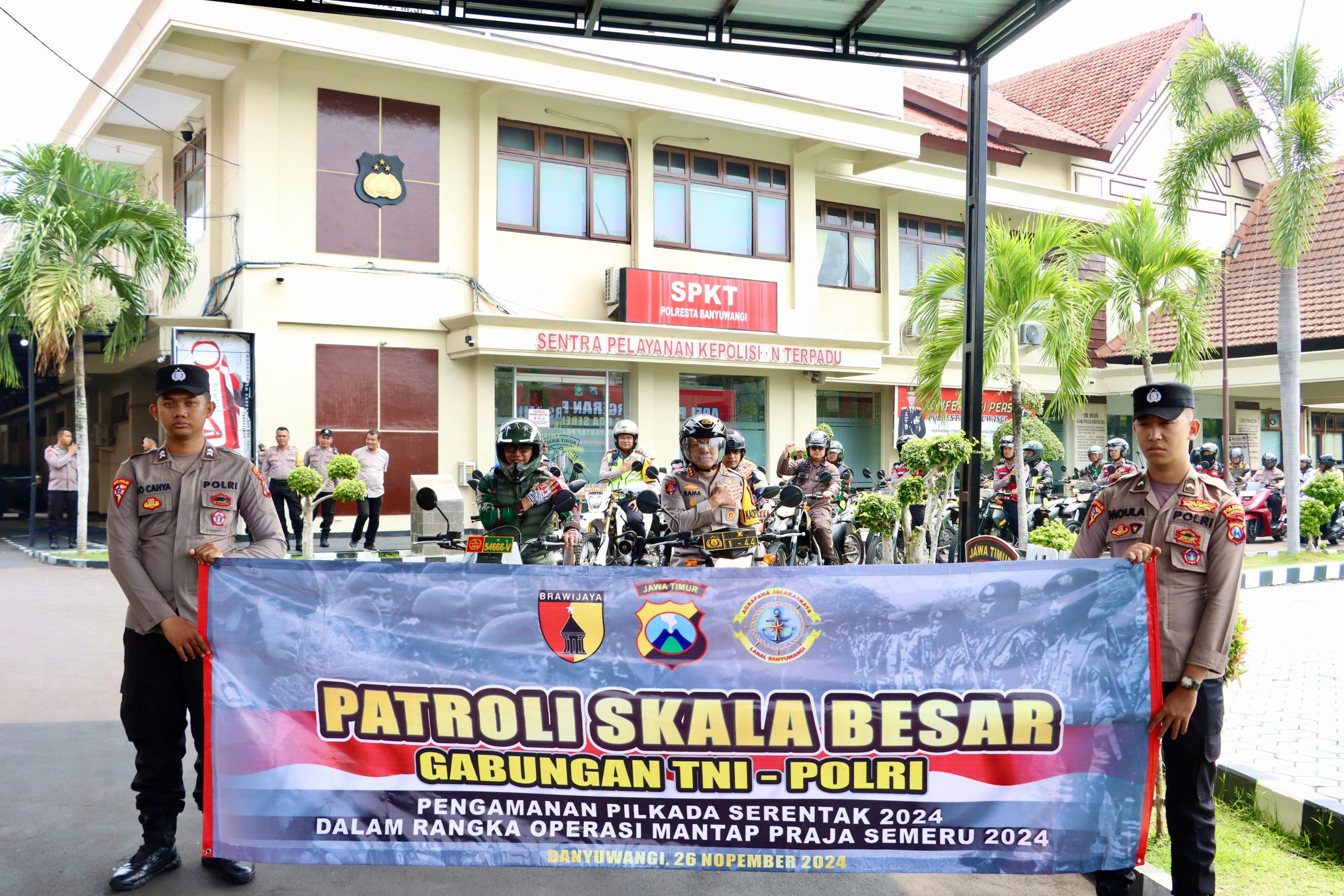 Banyuwangi – Letkol Arh Joko Sukoyo, S.Sos. M. Han. Dandim 0825/Banyuwangi bersama jajaran Forkopimda Kabupaten Banyuwangi laksanakan Patroli Skala Besar Dalam Rangka Pengamanan Pemilu Kepala Daerah Serentak Operasi Mantap Praja Semeru. (26-11-2024)