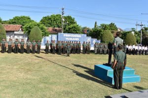 Dandim 0825/Banyuwangi menyampaikan Amanat Pangdam V/Brawijaya saya ingin mengucapkan terima kasih yang tulus dan penghargaan yang setinggi-tingginya atas kerja keras dan dedikasi yang telah ditunjukan seluruh prajurit dan PNS Kodam V/Brawijaya, dalam menjalankan berbagai tugas yang telah dilaksanakan diantaranya kegiatan protokoler yaitu kegiatan kunjungan Presiden RI, Wakil Presiden RI dan Pam VVIP dapat berjalan dengan lancar.