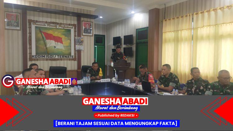 Ternate – Komandan Kodim 1501/Ternate, Letkol Inf Jani Setiadi, memaparkan progres pelaksanaan program TNI Manunggal Membangun Desa (TMMD) Ke-124 tahun 2025 kepada Tim Pengawasan dan Evaluasi (Wasev) di Makodim 1501/Ternate, Kamis (15/5/2025).