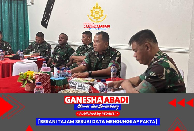 Timika – Bertempat di Ruang Transit Makodim 1710/Mimika, Jalan Agimuga Mile 32, Distrik Kuala Kencana, Kabupaten Mimika, Dandim 1710/Mimika Letkol Inf M. Slamet Wijaya, S.Sos., M.Han., M.A. memimpin sidang jabatan Bintara dan Tamtama personel Kodim 1710/Mimika Triwulan I TA 2025, Kamis (23/01/2025). Sidang tersebut dihadiri oleh para Danramil, Perwira Staf, Bati Staf, dan Bamin Ramil.