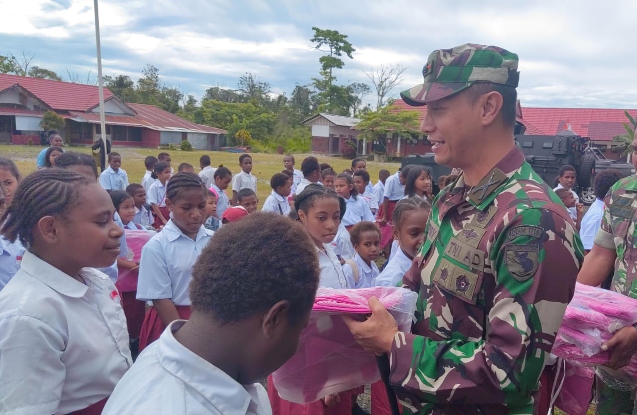 Dekai – Dalam rangka mendukung pendidikan di wilayah terpencil, Komandan Kodim (Dandim) 1715/Yahukimo, Letkol Inf Tommy Yudistyo, S.Sos., M.Han., menyerahkan bantuan berupa tas dan seragam sekolah kepada anak-anak di Dekai, Kabupaten Yahukimo. Bantuan ini merupakan bagian dari program KASAD (Kepala Staf Angkatan Darat) yang bertujuan mendorong semangat belajar dan meningkatkan kesejahteraan siswa-siswi dari keluarga kurang mampu.