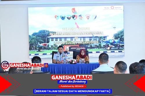 Makassar – Komandan Lanud Sultan Hasanuddin (Danlanud HND) Marsma TNI Arifaini Nur Dwiyanto, M.Han., menegaskan bahwa pernikahan tidak hanya menyatukan dua insan, namun juga dua keluarga besar. Hal tersebut disampaikannya saat memberikan nasihat dan bimbingan pernikahan kepada prajurit yang akan melangsungkan pernikahan, bertempat di ruang Supernova, Baseops Lanud Sultan Hasanuddin, Makassar, Senin (2/6/2025).