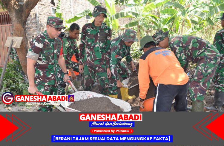 Letkol Inf Fictor turut mengangkut adukan material menggunakan angkong dan memasukkan bahan ke mesin molen di lokasi perbaikan saluran air sepanjang 586 meter di Jln. Mojo, Kelurahan Karangasem, Kecamatan Laweyan, Kota Surakarta.