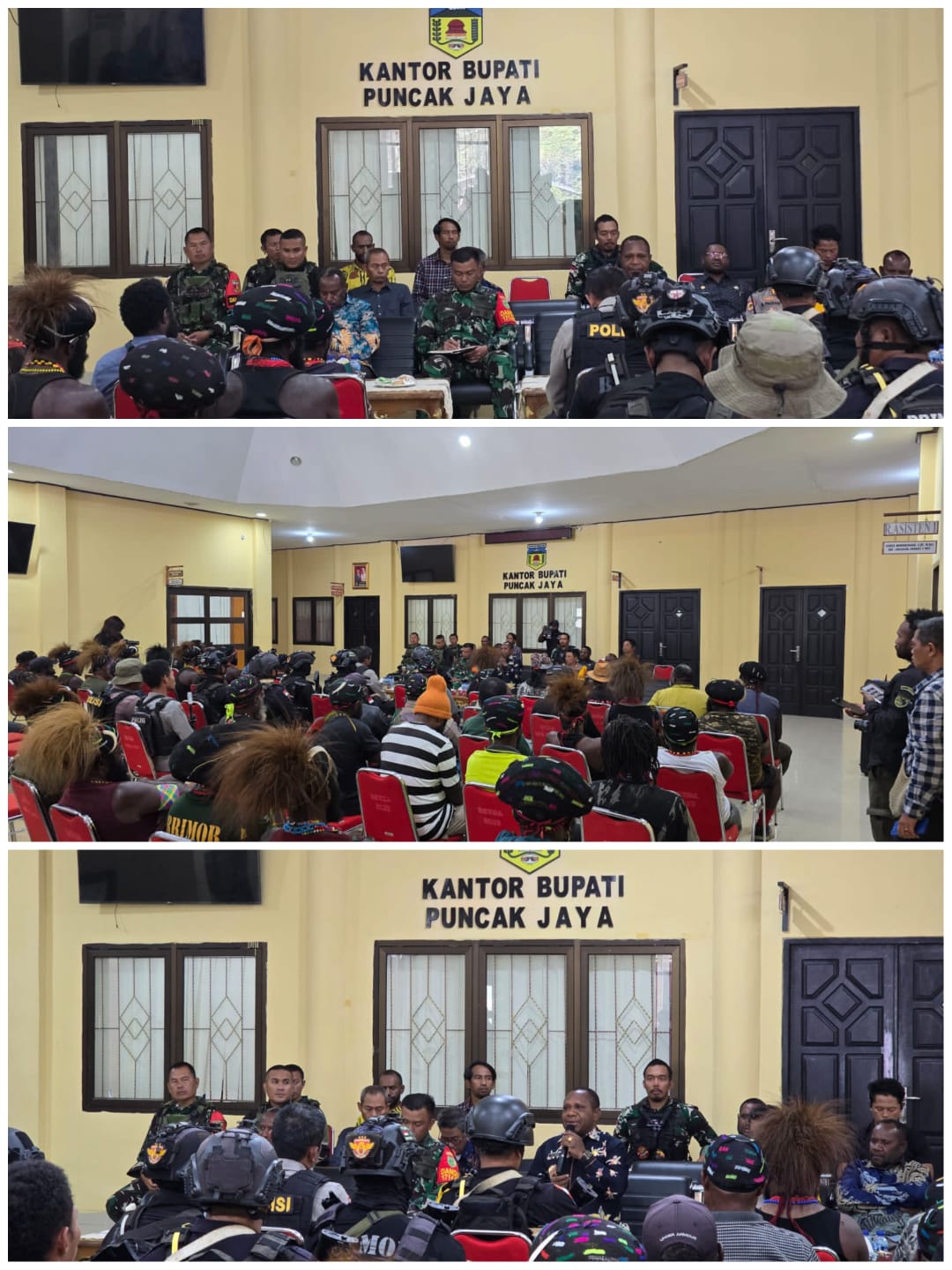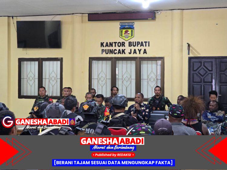 Puncak Jaya – Komandan Satgas Kewilayahan Yonif 715/Motuliato, Letkol Inf Prawito, hadir langsung memantau proses mediasi konflik antar pendukung Calon Bupati dan Wakil Bupati Puncak Jaya. Mediasi berlangsung di Kantor Bupati Puncak Jaya, Jalan Andreas Come, Distrik Pagaleme, Kamis (8/5/2025).