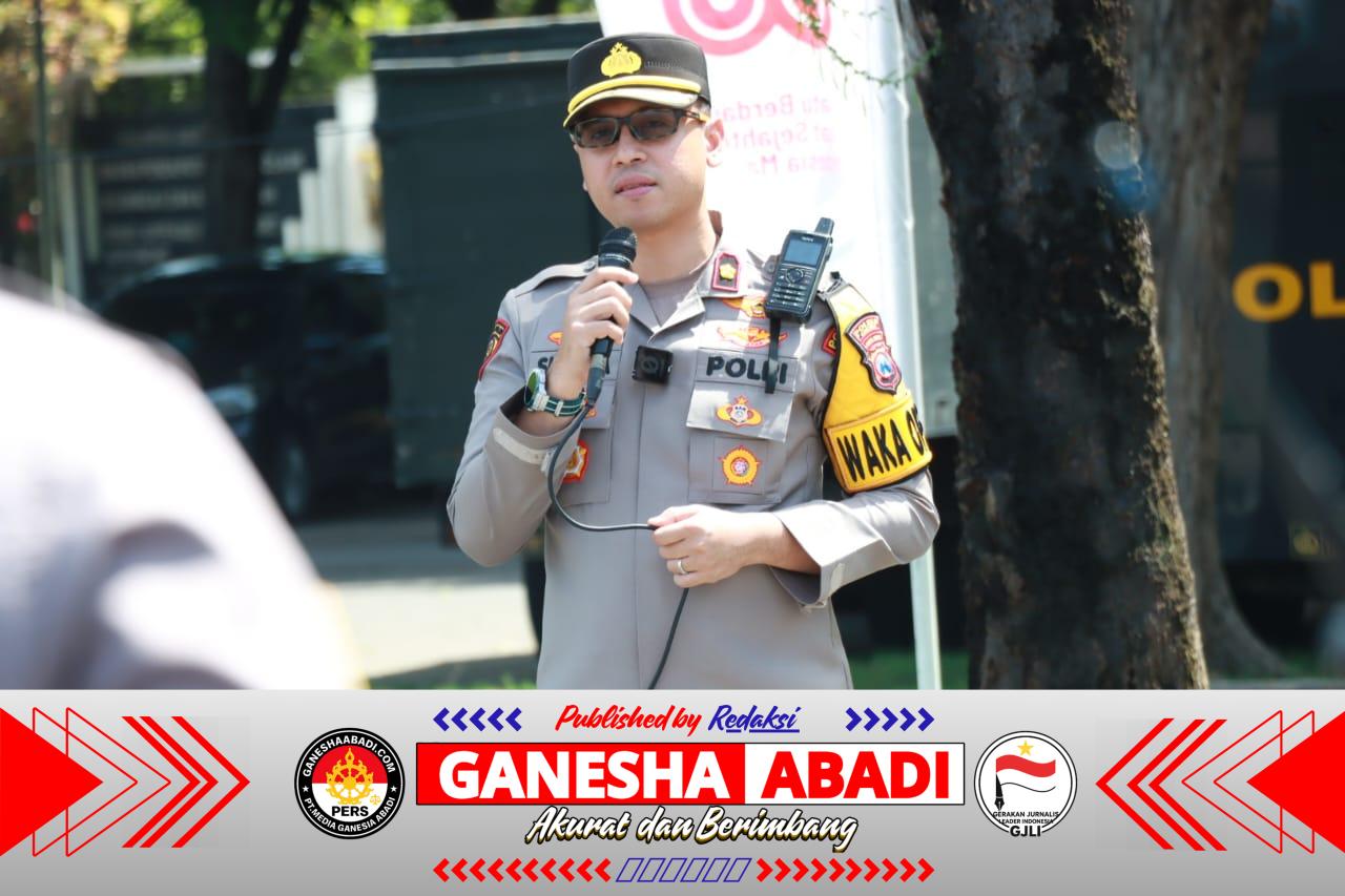 Sebelum massa aksi tiba, Wakapolres Gresik Kompol Shabda Purusha Putra memimpin apel pengamanan dan menegaskan bahwa tugas aparat adalah memberi pelayanan, bukan membatasi ruang demokrasi buruh.