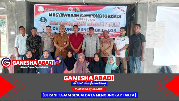 Aceh Timur – Pemerintah Desa Seuneubok Buloh, Kecamatan Idi Tunong, Kabupaten Aceh Timur, secara resmi membentuk Koperasi Merah Putih (KMP) melalui Musyawarah Desa Khusus (Musdessus) yang digelar di Meunasah Desa, Senin (26/05/2025).