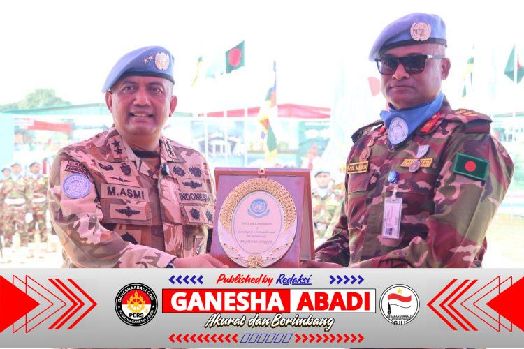 Jakarta – Deputy Force Commander (DFC) MINUSCA Mayor Jenderal TNI Maychel Asmi, P.S.C., S.E., M.Han. memimpin upacara Medal Parade gabungan bagi prajurit Bangladesh Battalion ke-11 (BANBAT-11) dan Bangladesh Level-2 Plus Hospital (BANMED-2/3) di Bouar, Republik Afrika Tengah, Jumat (7/11/2025).
