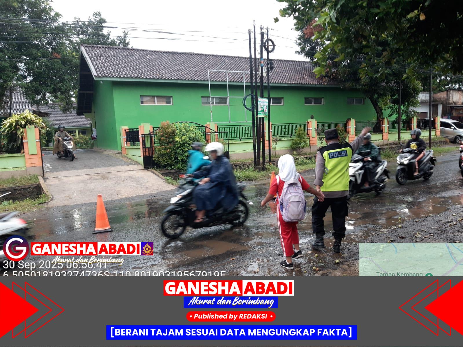 Jepara – Polres Jepara | Meski diguyur hujan ringan, personel Kepolisian Resor (Polres) Jepara, Polda Jawa Tengah, dan jajarannya tetap semangat melaksanakan pengaturan arus lalu lintas pagi hari di sejumlah titik rawan kemacetan, pada Selasa (30/9/2025) pagi.