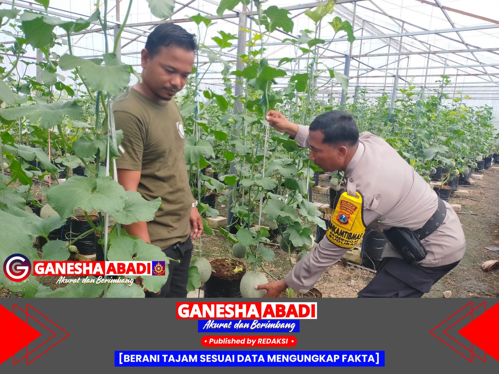 Dalam kunjungannya, Aipda Nur Hamid tak sekadar berdialog, namun juga ikut membantu merawat tanaman melon di dalam green house yang dikelola oleh petani setempat. Ia memeriksa kondisi tanaman dan ikut memastikan buah melon tumbuh optimal.