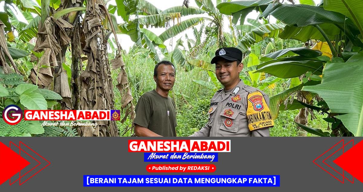 Sidoarjo – Dalam rangka mendukung program Asta Cita Pemerintah Republik Indonesia, khususnya di bidang ketahanan pangan, Bhabinkamtibmas Desa Jemundo, Kecamatan Taman, Bripka Erick, melaksanakan kegiatan sambang desa dengan mengunjungi perkebunan pisang milik warga di wilayah binaannya, pada Minggu (18/5/2024).
