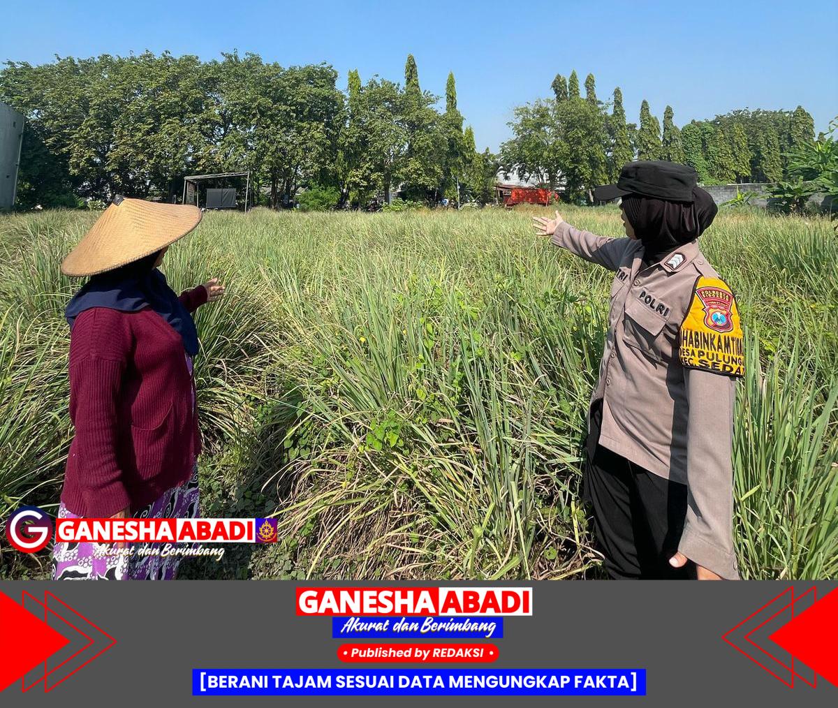 Sidoarjo – Dalam rangka mendukung program ketahanan pangan nasional sebagaimana dicanangkan dalam Asta Cita Presiden Republik Indonesia, Prabowo Subianto, Bhabinkamtibmas Polsek Sedati Desa Pulungan Brigadir Dwi Retno Putri melaksanakan kegiatan sambang ke lahan perkebunan tanaman serai