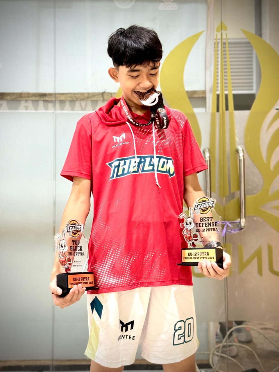 Banyuwangi – Nama Gavine Ezar Firmansah atau yang kerap disapa Ezar pemain bernomor punggung 20 dari tim basket The Lion Surabaya KU-12, menjadi perbincangan hangat setelah penampilannya yang luar biasa dalam turnamen basket Familia Cup 2024 yang diadakan di GOR Unesa, Surabaya. Minggu, (01/12/24).