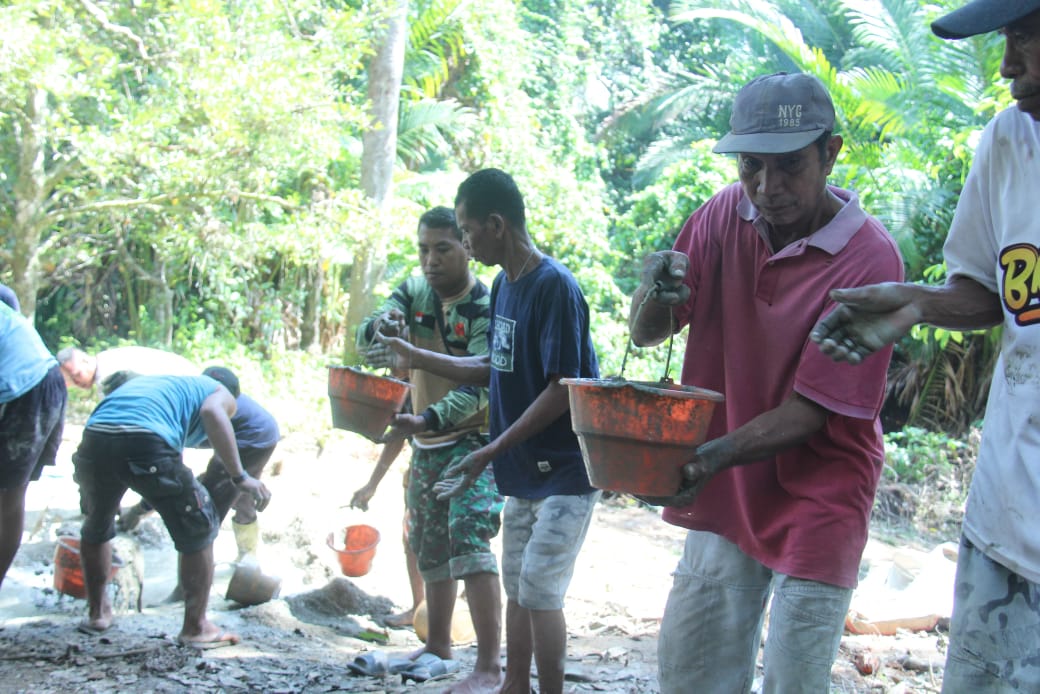 Dengan semangat gotong royong, warga Desa Malbufa bahu-membahu bersama prajurit TNI dalam setiap tahap pengerjaan, mulai dari persiapan material hingga proses pengecoran. Meskipun pekerjaan ini cukup berat, kebersamaan dan kerja sama antara masyarakat dan TNI membuatnya berjalan dengan lancar.