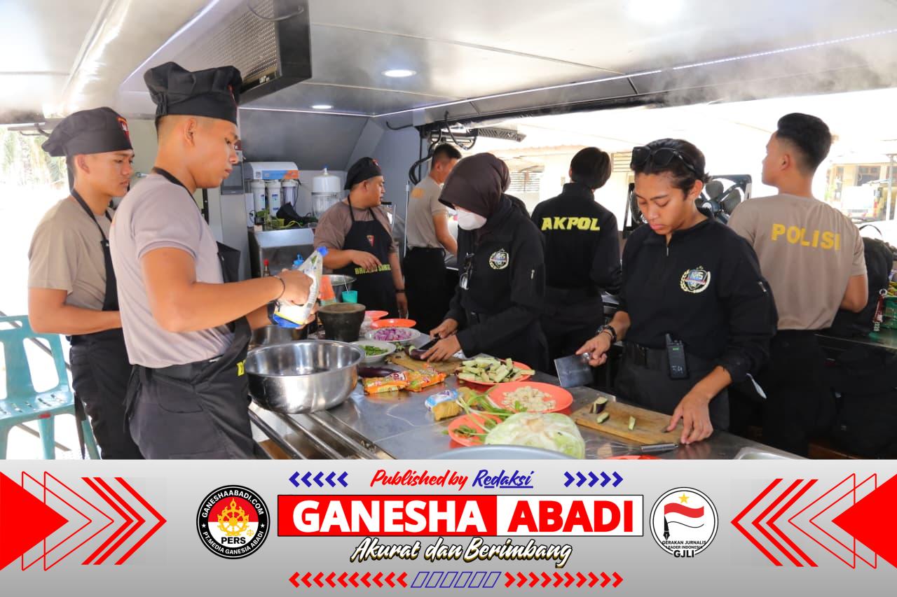 Taruna Tingkat III Akademi Kepolisian, Intan Gustava Rongrean, menyampaikan bahwa dapur lapangan tersebut menyiapkan berbagai menu makanan bergizi untuk masyarakat.
