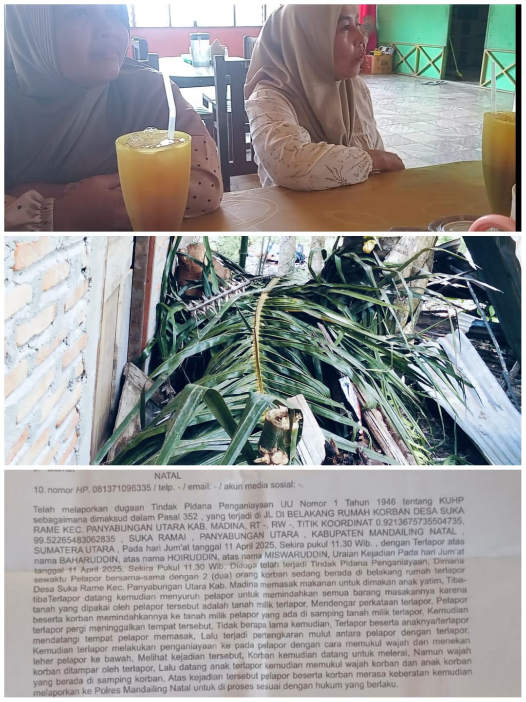 Madina – Seorang janda dan anaknya yang masih di bawah umur, warga Desa Sukaramai, Kecamatan Panyabungan Utara, Kabupaten Mandailing Natal (Madina), Sumatera Utara, diduga menjadi korban pengeroyokan dan ancaman pembunuhan oleh aparat desa, Senin (28/4/2025).