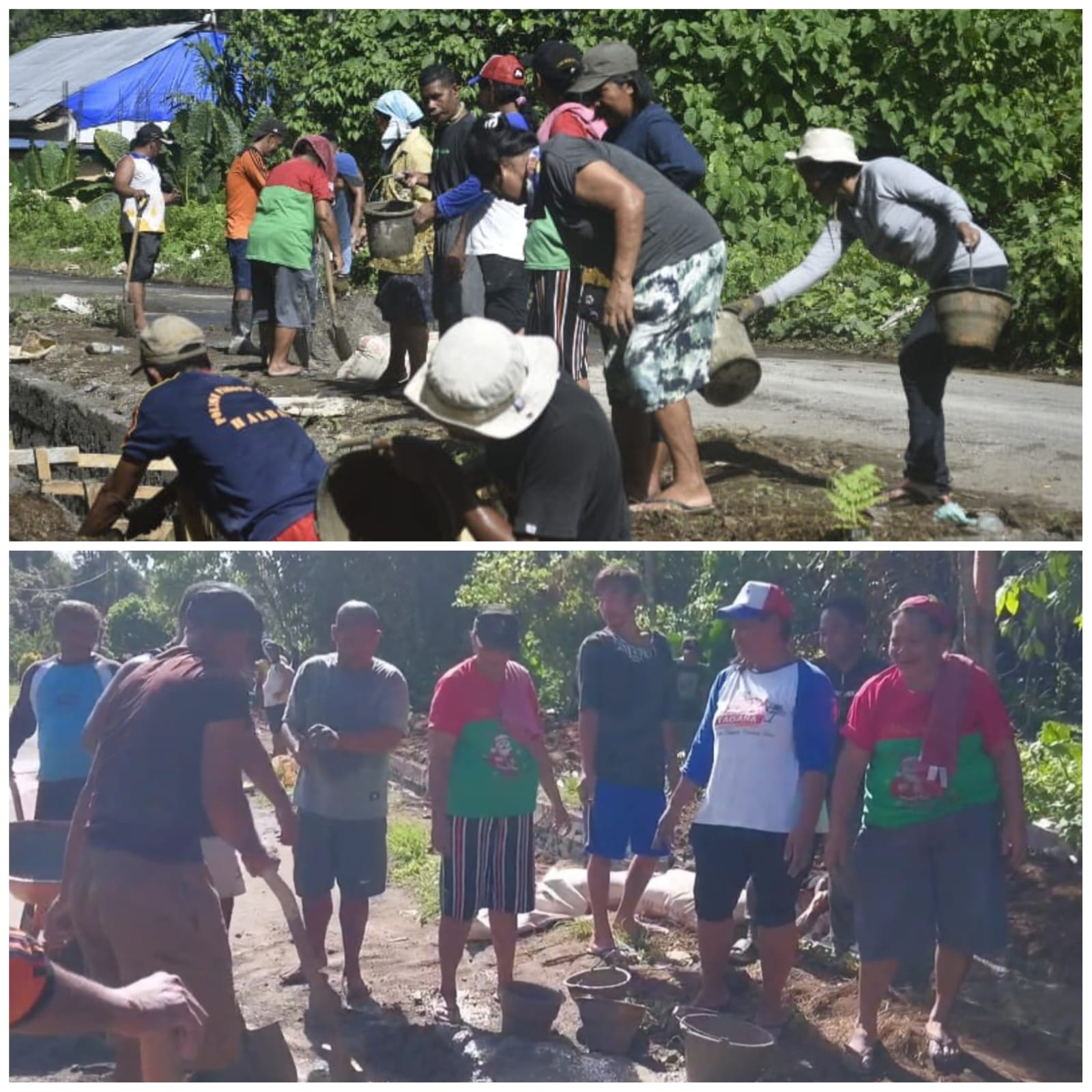 Dengan penuh semangat, para ibu membantu mengangkat ember berisi campuran semen dan mendorong argo cor, berbaur dengan personel Satgas TMMD tanpa rasa lelah. Aksi mereka menjadi simbol kuat partisipasi aktif warga dalam pembangunan desa.