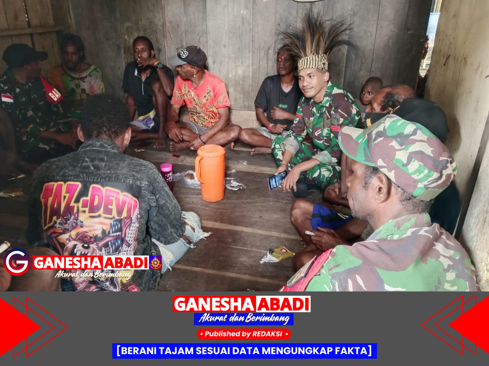Yahukimo – Menjelang peringatan HUT TNI ke-80, Babinsa Koramil 1715-07/Suru-Suru Kodim 1715/Yahukimo melakukan kegiatan Komunikasi Sosial (Komsos) dengan masyarakat di Kampung Brimono, Distrik Suru-Suru, Senin (22/9/2025).