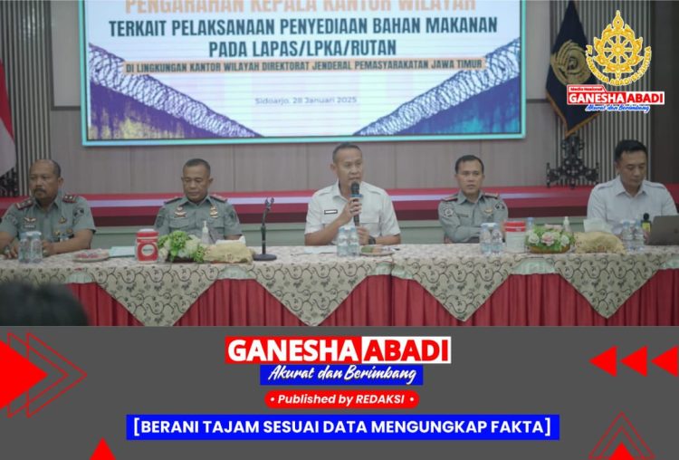 Surabaya – Kantor Wilayah Direktorat Jenderal Pemasyarakatan (Ditjenpas) Jawa Timur terus berupaya meningkatkan kualitas pelayanan bagi Warga Binaan Pemasyarakatan (WBP). Untuk itu, Kanwil Ditjenpas Jatim menggelar pengarahan terkait penyediaan bahan makanan (Bama) dan proyek konstruksi di Lapas, Lembaga Pembinaan Khusus Anak (LPKA), dan Rumah Tahanan Negara (Rutan) pada Selasa (28/1). Acara yang berlangsung di Aula MD Arifin, Lapas Kelas I Surabaya, ini dihadiri seluruh Kepala Unit Pelaksana Teknis (UPT) Pemasyarakatan dan penyedia bahan makanan se-Jawa Timur.