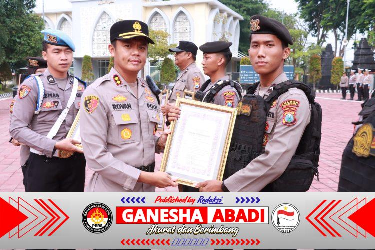 Gresik – Sebagai bentuk apresiasi atas dedikasi dan prestasi kerja, Kapolres Gresik AKBP Rovan Richard Mahenu memberikan penghargaan kepada 25 personel Polri dan satu warga masyarakat yang dinilai memiliki kontribusi luar biasa dalam menjalankan tugas kepolisian dan menjaga keamanan wilayah.
