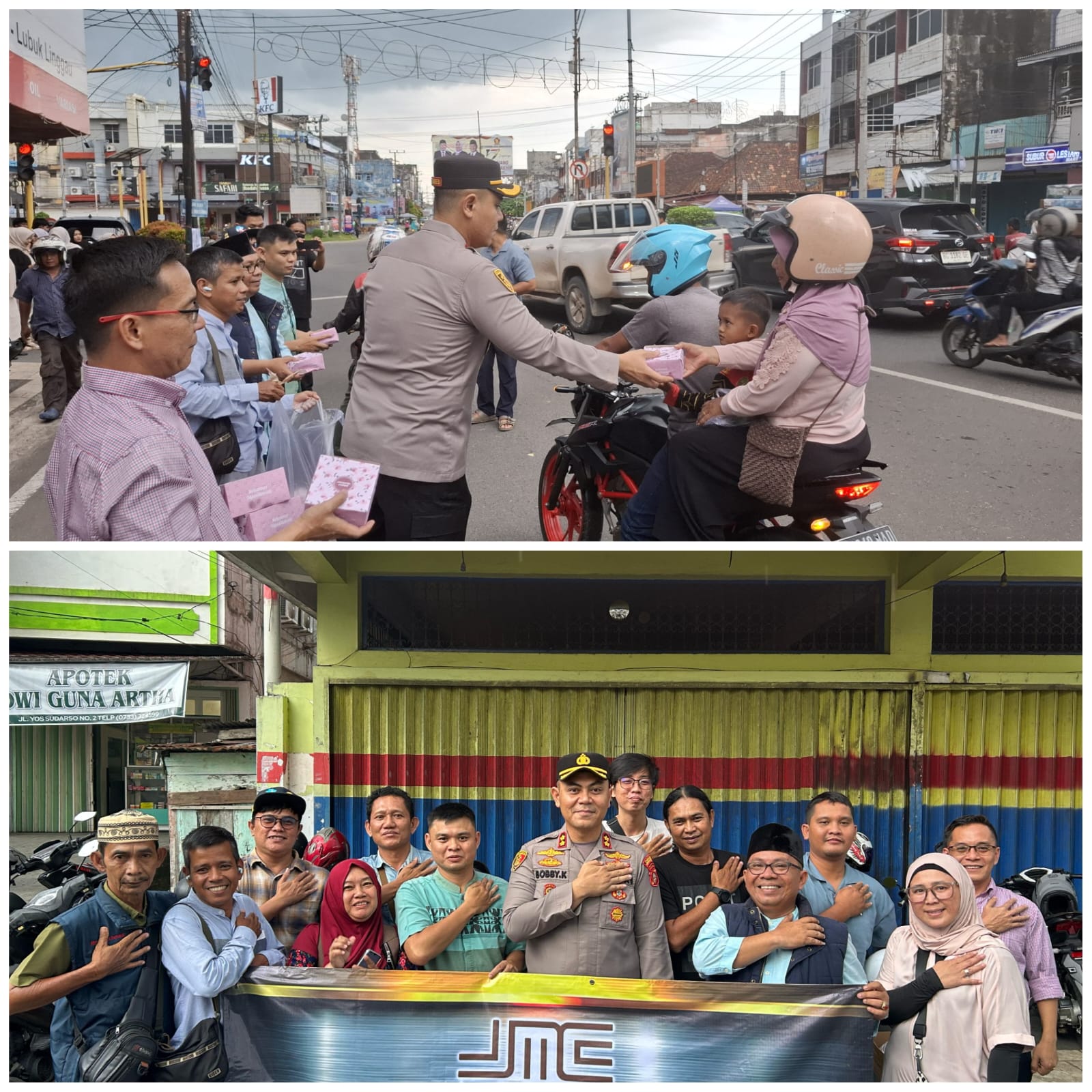 Lubuklinggau, 18 Maret 2025 – Kapolres Lubuk Linggau, AKBP Bobby Kusumawardhana, menggelar aksi sosial berbagi takjil bersama rekan-rekan jurnalis dari Media Center. Kegiatan ini berlangsung di pertigaan RCA, Jalan Yos Sudarso, Kota Lubuk Linggau, sebagai bentuk kepedulian terhadap masyarakat yang menjalankan ibadah puasa.