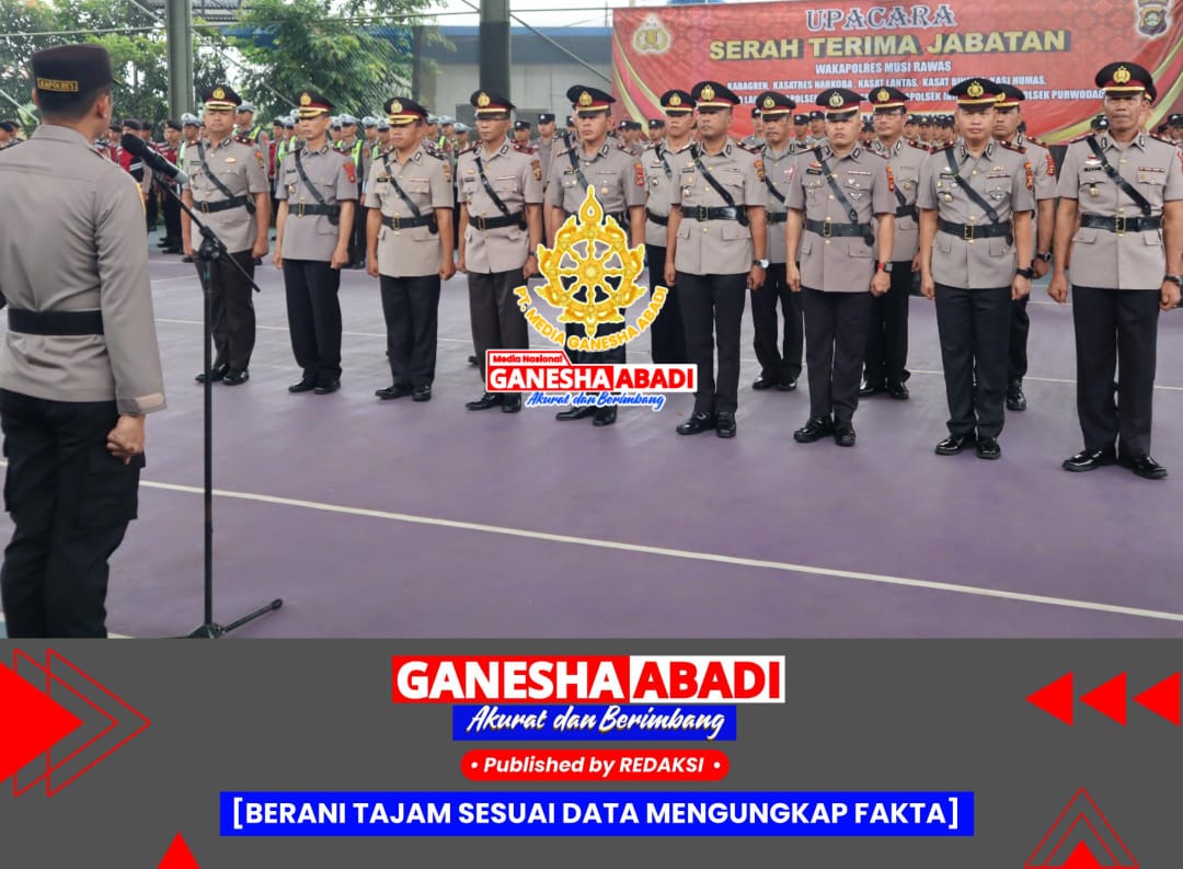 Musi Rawas – (ganesah abadi com) Polres Musi Rawas (Mura) menggelar Upacara Serah Terima Jabatan (Sertijab) pada Sabtu, 25 Januari 2025, di Mapolres Mura. Upacara yang berlangsung mulai pukul 07.30 WIB ini dihadiri oleh jajaran PJU Polres Mura, Kapolsek, serta personel Polres Mura dan perwakilan Polsek jajaran.