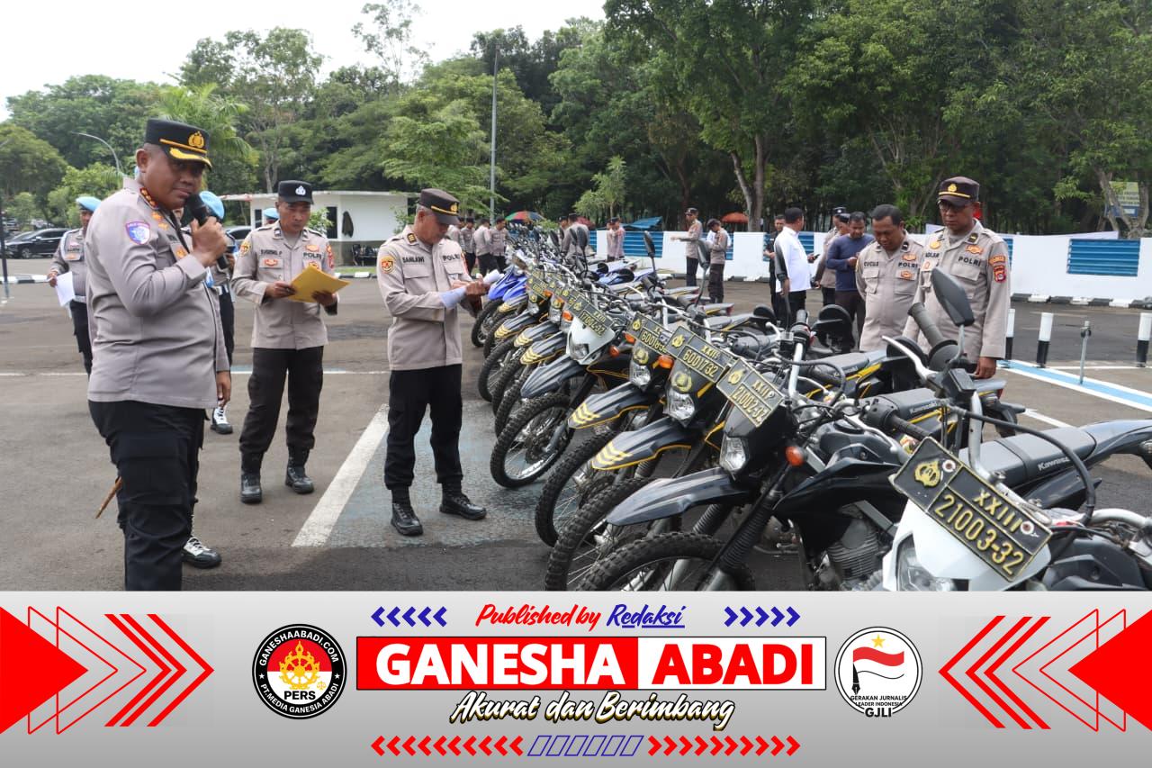 Satu per satu, kendaraan dinas baik roda dua ataupun roda empat serta kendaraan taktis yang digunakan personel diperiksa kelaikannya. Pengecekan itu untuk memastikan kendaraan dalam keadaan siap pakai sehingga dapat optimal melayani masyarakat.