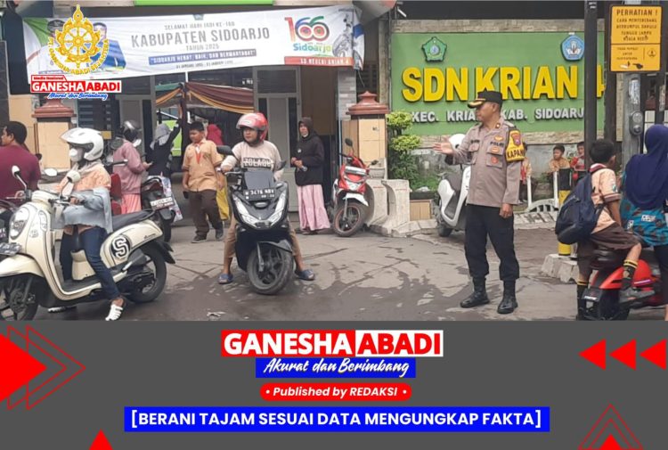 Sidoarjo – Kompol. I.G.P. Atma Giri, S.H., M.H., Kapolsek Krian, turun langsung mengatur arus lalu lintas dan menyebrangkan pengguna jalan di depan Sekolah Dasar Negeri (SDN) Krian 3, Jalan Gubernur Sunandar Priyo Sudarmo, Krian, Sidoarjo, pada Rabu (30/1/2025).