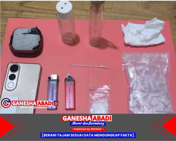 Berdasarkan penyelidikan, tim langsung menuju ke lokasi dan mendapati tersangka AK tengah mengendarai sepeda motor Yamaha tanpa nomor polisi di depan rumah warga Desa Prabumulih II. Saat dilakukan penggeledahan, petugas menemukan satu dompet hitam berisi satu bungkus plastik klip bening berukuran sedang berisi kristal putih diduga sabu dengan berat bruto 6,72 gram. Barang tersebut disimpan di kantong depan celana jeans tersangka. Selain itu, petugas juga mengamankan sebuah handphone merek Vivo.