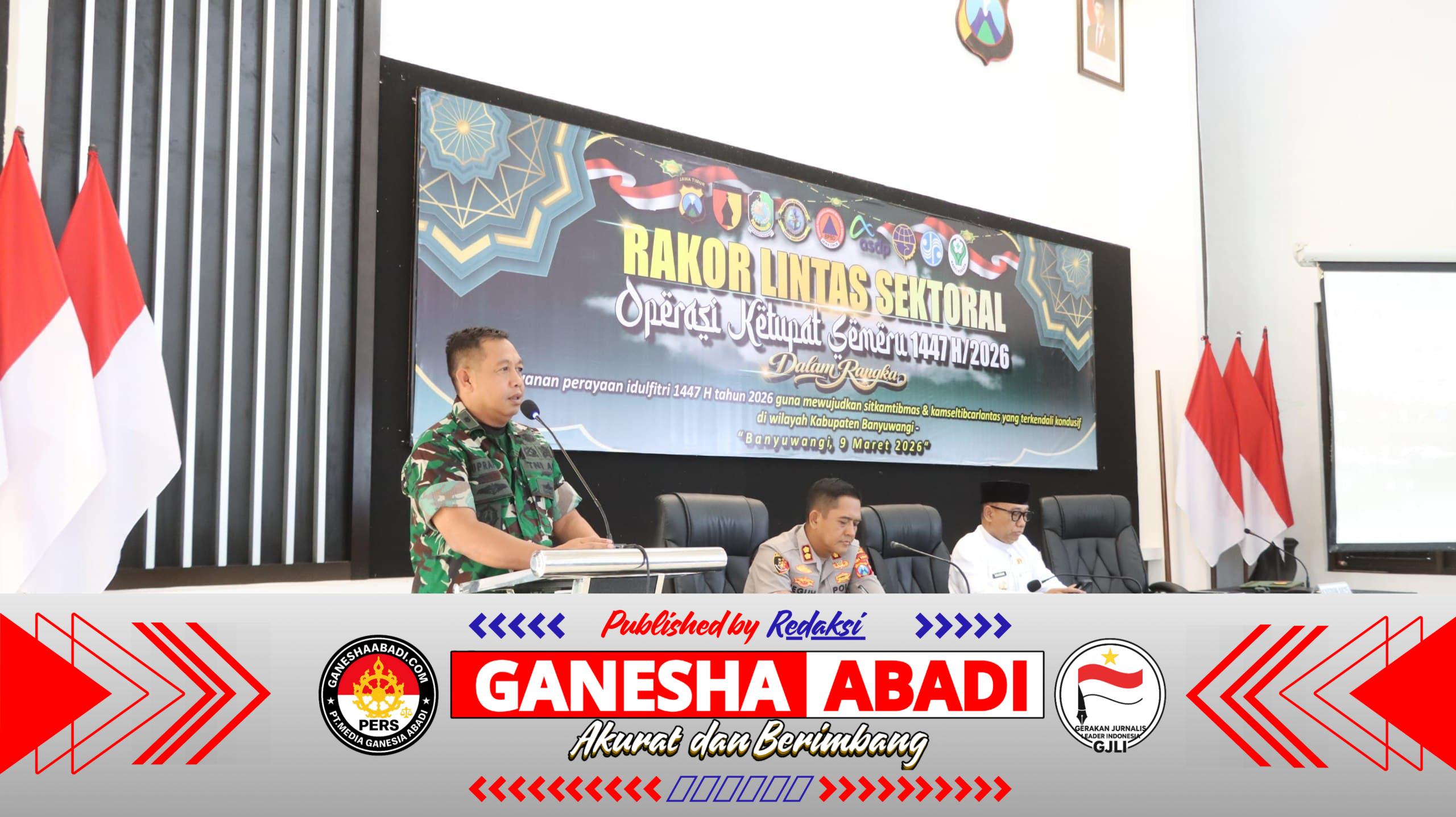 BANYUWANGI – Upaya memperkuat sinergitas lintas sektor dalam menjaga keamanan dan kelancaran arus mudik Lebaran terus dimatangkan. Kepala Staf Kodim (Kasdim) 0825/Banyuwangi Mayor Kav Suprapto menghadiri Rapat Koordinasi (Rakor) Lintas Sektoral Operasi Ketupat Semeru 2026 yang digelar di Mapolresta Banyuwangi, Senin (9/3/2026). Kegiatan ini diikuti unsur Forkopimda, TNI, Polri, pemerintah daerah, serta instansi terkait sebagai langkah strategis memastikan kesiapan pengamanan perayaan Idulfitri 1447 Hijriah di wilayah Kabupaten Banyuwangi berjalan aman, tertib, dan kondusif.