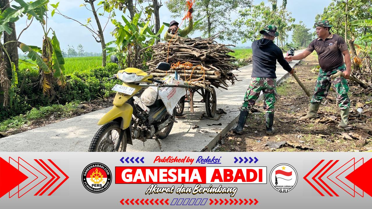 Praka Dian dan Kopda Sutrisno salah satu Anggota Satgas TMMD dengan keikhlasan hati secara langsung membantu mengangkat kayu bakar tersebut. Praka Dian Dan kopda Sutrisno juga membantu mengangkat kayu tersebut di tata di grobak yang di tarik dengan sepeda motor.
