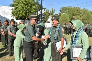 Pada kesempatan tersebut, Komandan Kodim 0825/Banyuwangi Letkol Arh Joko Sukoyo, S.Sos. M. Han., menyerahkan piagam penghargaan dan kenang-kenangan kepada ketiga anggota yang memasuki Masa Persiapan Pensiun.